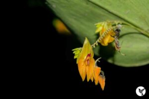 Telipogon bowmanii: This orchid is found in the Andes Mountains of Peru, Ecuador and Colombia, where it grows as an epiphyte on trees and rocks. It is known for its unique flowers, with a bright yellow color and have a distinctive shape like their pollinators.